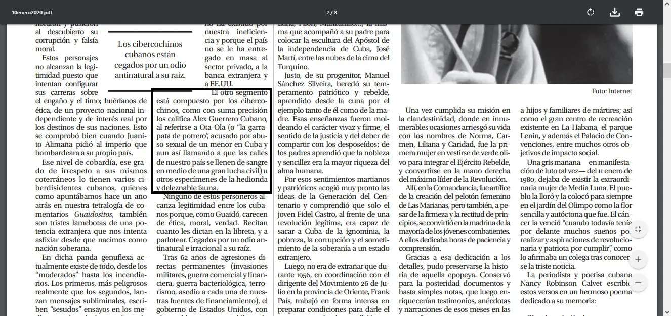 En un articulo aparecido el pasado 10 de septiembre en el diario 5 de Septiembre, diario provincial de Cienfuegos, el periodista Julio Martinez Molina dedica un espacio a Otaola, dentro de un texto titulado ‘Ilegítimos’.