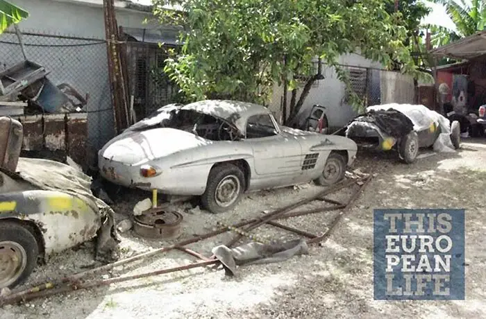 No es, de todos modos, el primer 300 SL que aparece abandonado en la isla. Ya en 2015 aparecieron otros dos en un estado de deterioro similar, capturando la atención de entusiastas de todo el mundo. Desde luego, la restauración de este modelo en la isla es algo altamente improbable dada la situación económica del país, pero si un coleccionista extranjero se hace con estos restos –y seguro que habrá interesados–, con una buena cantidad de dinero este precioso Mercedes que hoy es una sombra de lo que fue, podría volver a lucir como en sus mejores días.