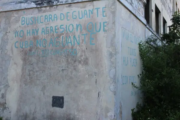 A inicios del 2000 se decidió volver a restaurar el edificio, pero este nunca fue el mismo. “Dijeron que la estructura se estaba hundiendo. No sé cómo, pero al final nada se hizo por rescatarlo y lo dejaron en el abandono”, continúa comentando Rogelio. En uno de sus gruesos muros de mampostería, lo único que dejaron quienes se suponía repararan el inmueble fue la consigna: “Bush, cara de guante, no hay agresión que Cuba no aguante”. “Tal parece que lo principal de esa empresa es la propaganda barata y no la rehabilitación de edificios”, refiere Rogelio con una expresión de risa en su rostro.