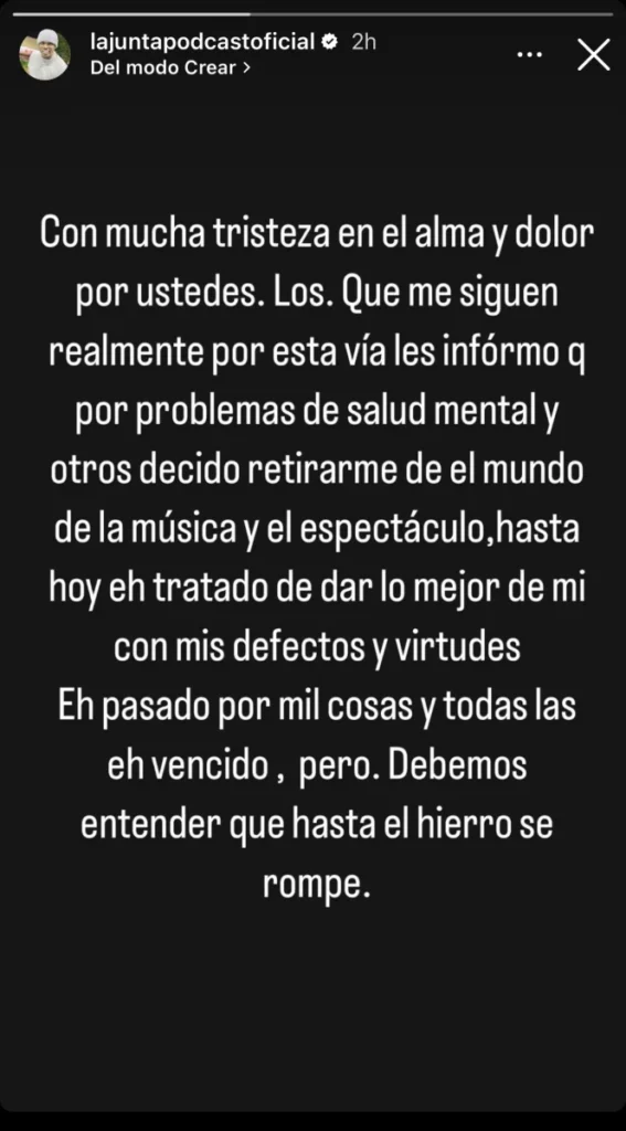 En otra publicación que Chocolate MC compartió en sus redes sociales, el Rey de los Reparteros confirmó que después de completar su último álbum, cumplirá con sus compromisos pendientes. Sin embargo, dejó en claro que su retirada de la música es una decisión definitiva.