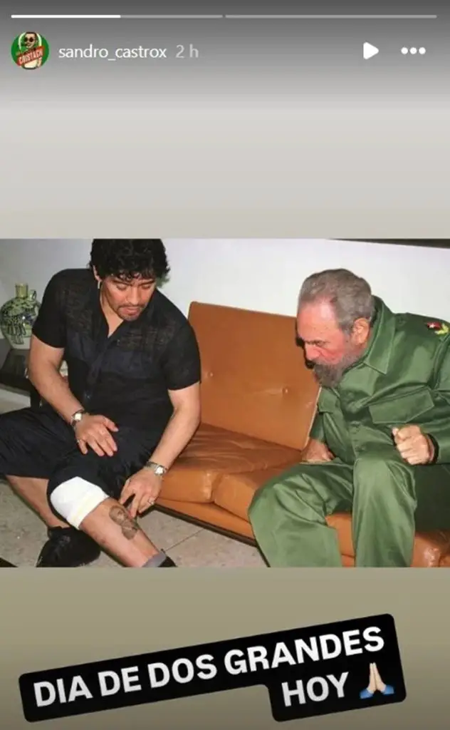 Sandro Castro volvió a encender las redes con su ya habitual devoción heredada. Esta vez publicó una foto donde el argentino Diego Armando Maradona aparece enseñándole a Fidel Castro el tatuaje que llevaba en honor al dictador. “Día de dos grandes hoy”, escribió el nieto del hombre que hundió a Cuba durante décadas, como si el país no estuviera hoy hundido en apagones, escasez y una epidemia que nadie controla.
