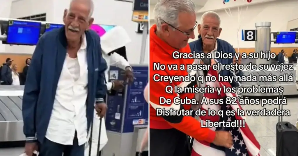 El clip, que dura apenas unos segundos, muestra al abuelito entrando al aeropuerto con una sonrisa enorme, rodeado por su hijo y otros familiares que no podían contener la emoción. En el texto que acompaña al video se lee: “Gracias a Dios y a su hijo, no va a pasar el resto de su vejez creyendo que no hay nada más allá de la miseria y los problemas de Cuba”. Y esas pocas palabras dicen mucho sobre la lucha de miles de familias cubanas separadas por años y kilómetros.