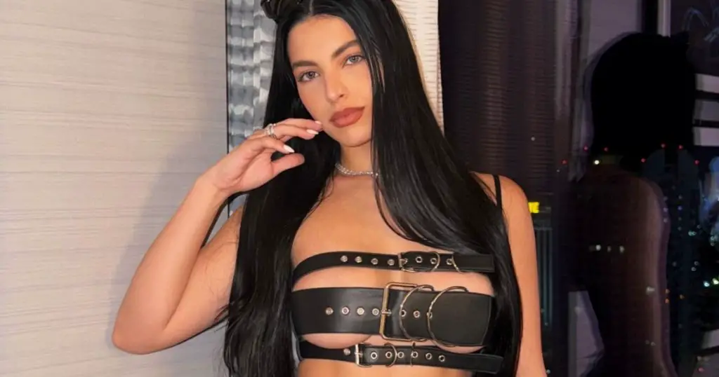 La joven apareció con un conjunto de cuero negro que no dejaba nada a la imaginación. El top tipo arnés, con tres tiras y hebillas metálicas, dejaba al descubierto gran parte de su abdomen y escote, mientras que el pantalón de tiro bajísimo apenas sostenido por finas tiras en la cadera marcaba su figura con una sensualidad arrolladora. Completó su outfit con una cartera negra y unas gafas oscuras, logrando un look que mezclaba poder, actitud y mucha provocación, dejando claro que no está para pasar desapercibida.