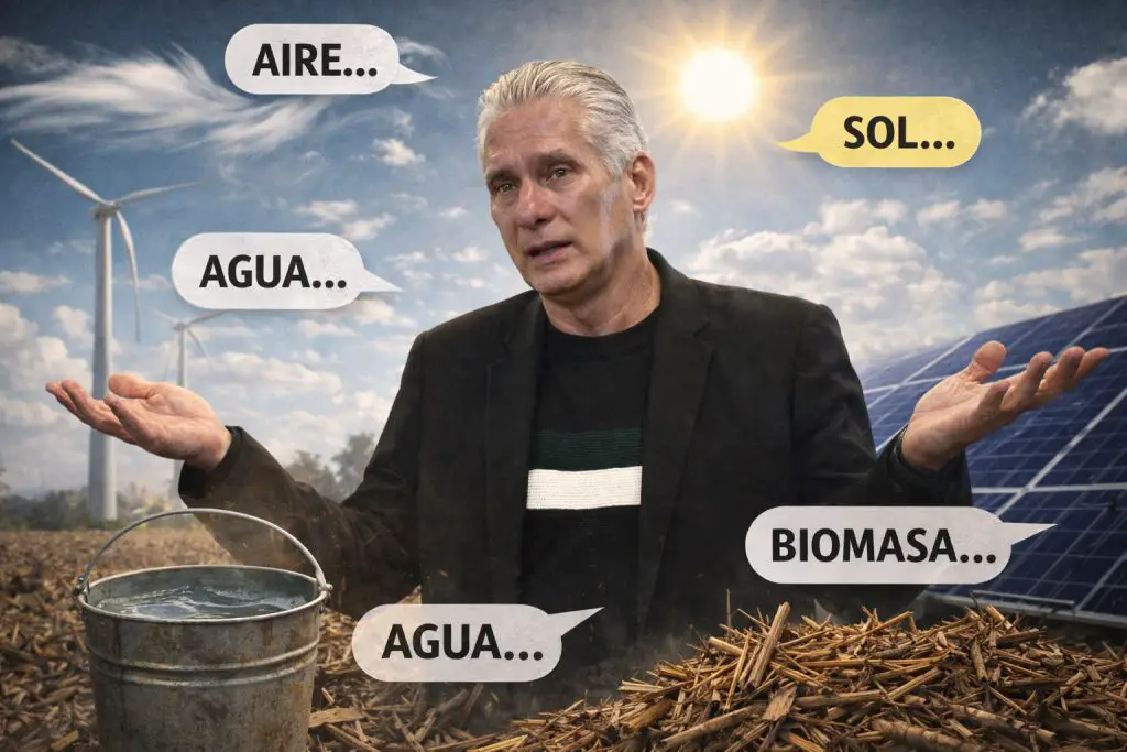 El momento más surrealista llegó cuando Díaz-Canel presentó como estrategia lo obvio. “Tenemos aire, tenemos agua, tenemos sol, tenemos biomasa”, dijo, como si enumerar la naturaleza resolviera la generación eléctrica. Convertir obviedades en plan es el último refugio de un poder sin respuestas.