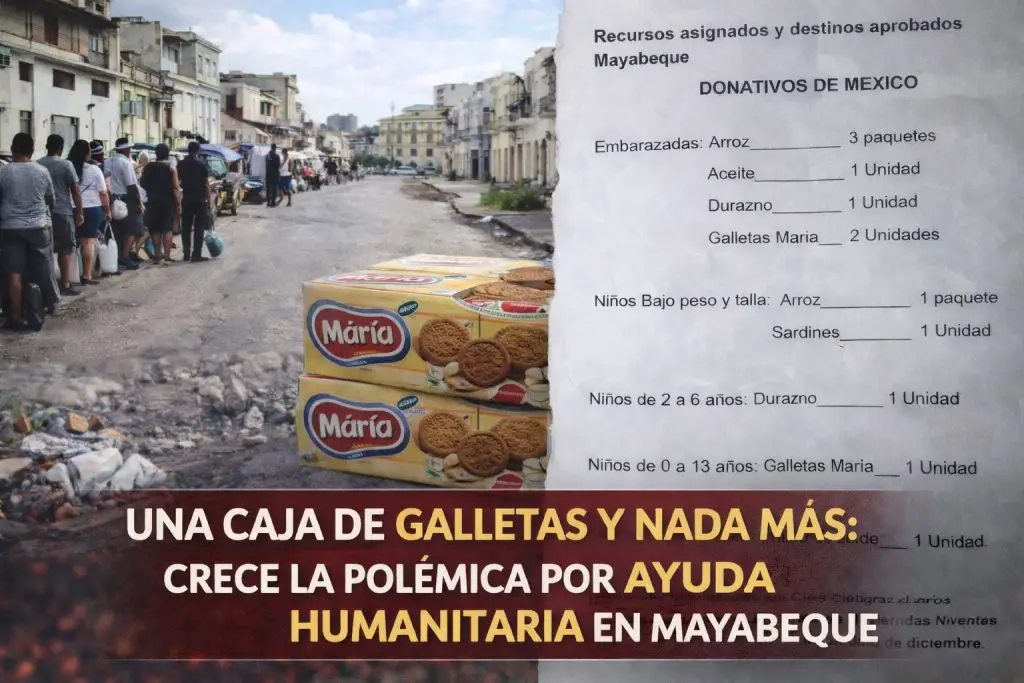 La reciente distribución en Cuba de un donativo enviado desde México no ha pasado precisamente en silencio. En Güira de Melena, Artemisa, varios residentes alzaron la voz tras denunciar que los núcleos familiares catalogados como vulnerables recibieron apenas un paquete de galletas, una escena que rápidamente encendió el debate en redes sociales.
