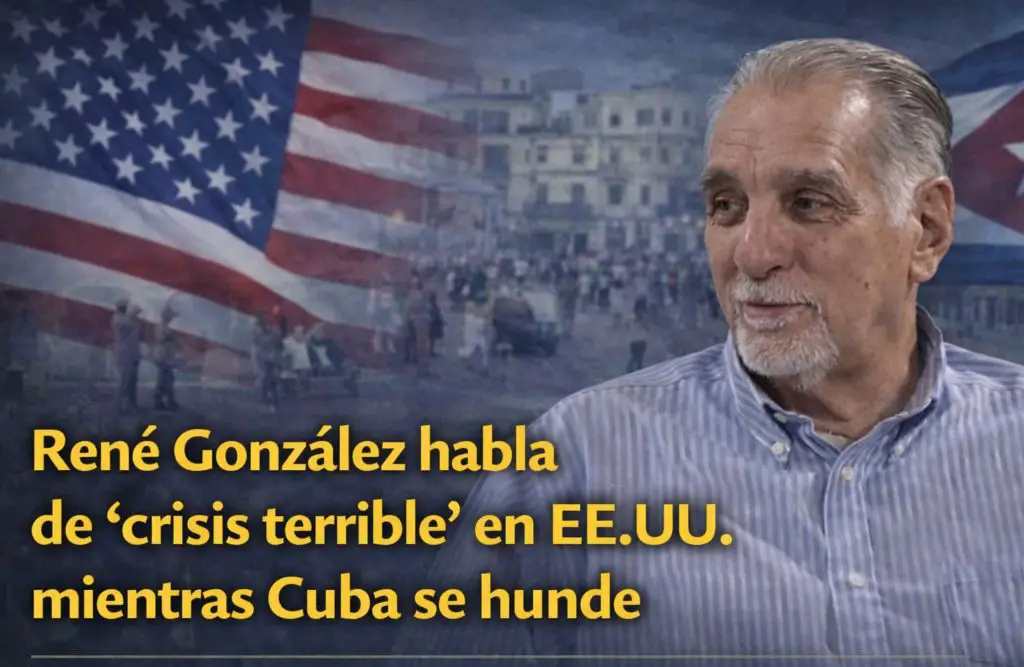 El ex agente de inteligencia cubano René González volvió a ocupar titulares tras sus recientes declaraciones en la televisión estatal. Durante una intervención en el programa Mesa Redonda, el también figura recurrente del discurso oficial aseguró que Estados Unidos atraviesa “una crisis terrible”, una afirmación que no tardó en generar reacciones dentro y fuera de la Isla.
