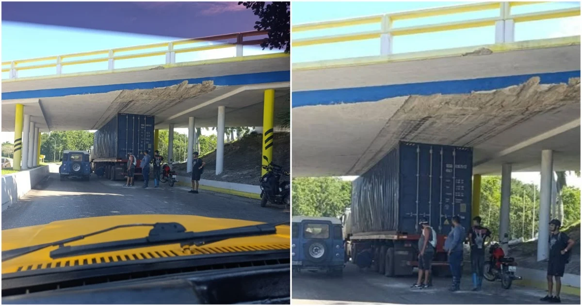 El puente no perdonó: así quedó un camión incrustado en plena Vía Blanca