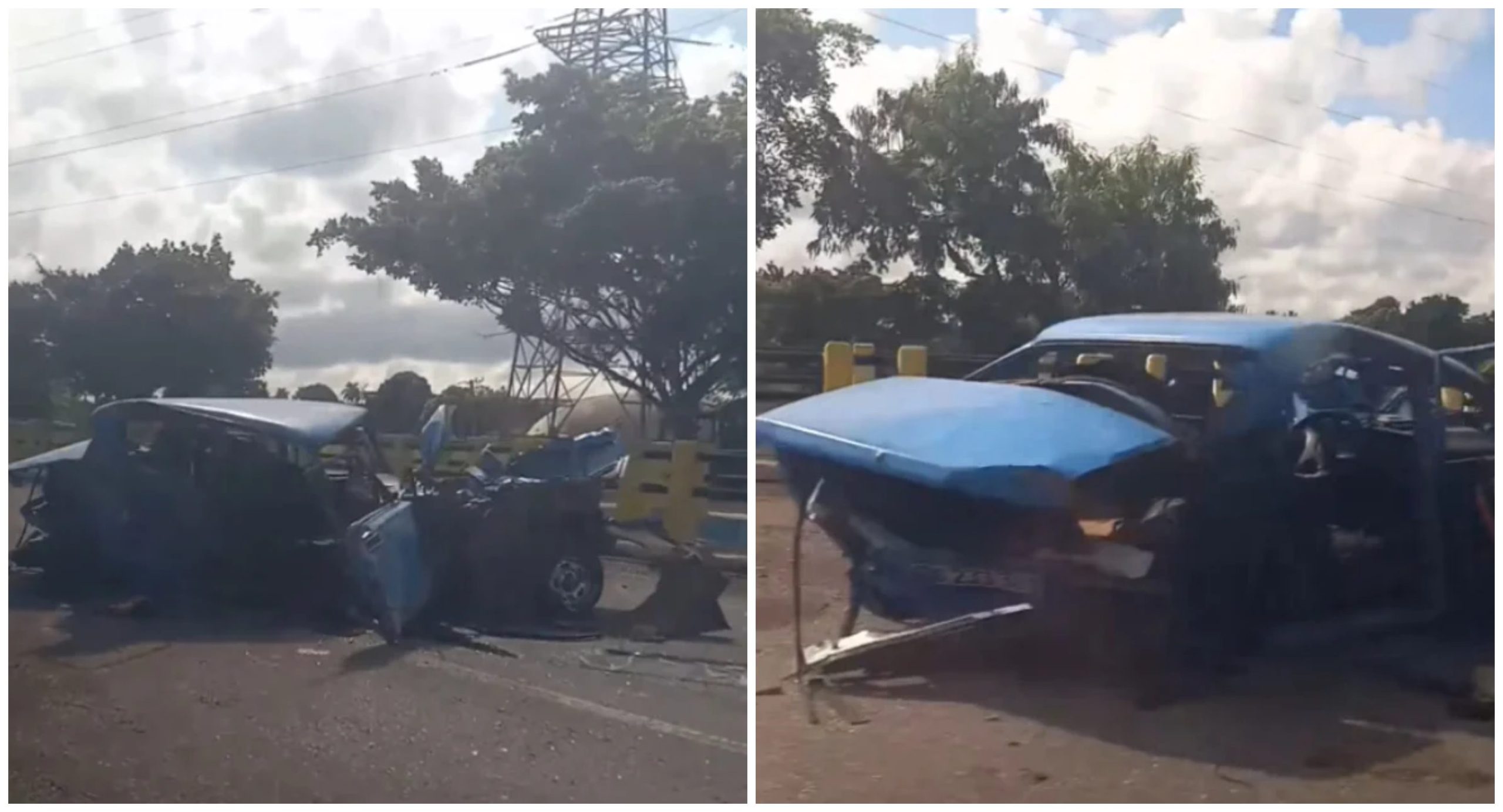 Violento accidente de tránsito en la Autopista Nacional, a la entrada de La Habana, deja un automóvil Lada completamente destruido