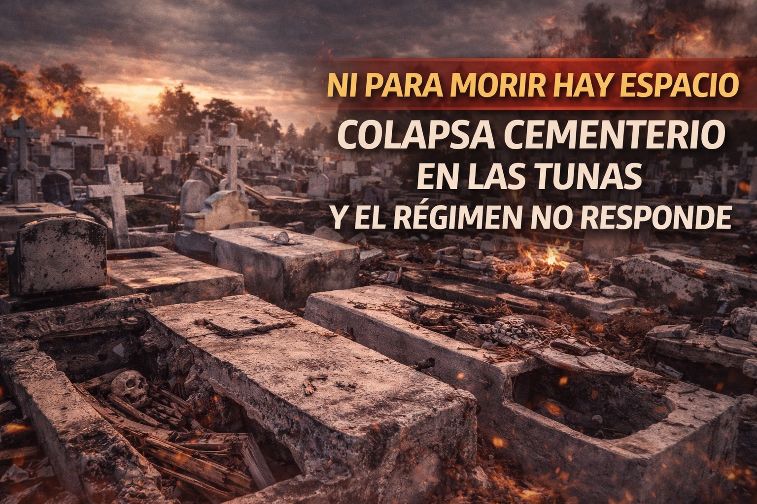 En Cuba ya no alcanza nada… ni siquiera el espacio para morir con dignidad. El cementerio Vicente García, el principal de Las Tunas, tuvo que suspender los entierros en áreas estatales, una medida que deja al descubierto un problema que lleva años pudriéndose sin solución.