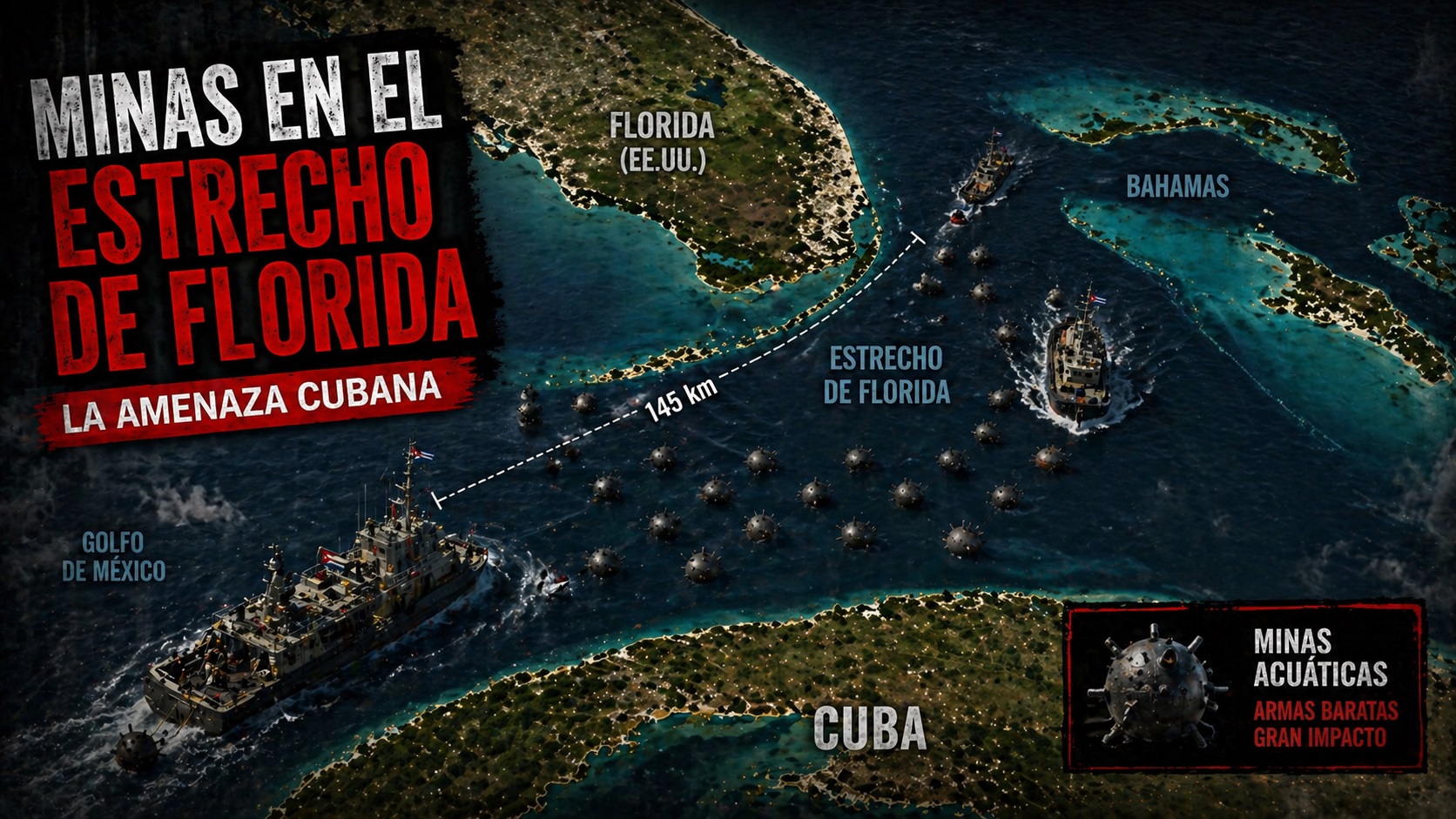 En medio de la crisis total que vive Cuba, el régimen vuelve a jugar su carta favorita: la amenaza externa como cortina de humo. Esta vez, páginas afines a la dictadura han comenzado a difundir un mensaje alarmista: la supuesta capacidad de llenar el Estrecho de la Florida con minas navales ante una eventual intervención militar de Estados Unidos.