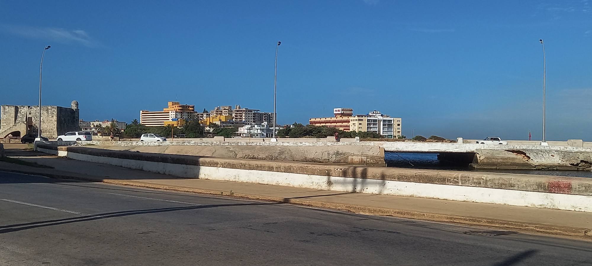 Cubanos denuncian con preocupación que el encofrado del puente que cruza sobre el final del Malecón de La Habana se está cayendo a pedazos