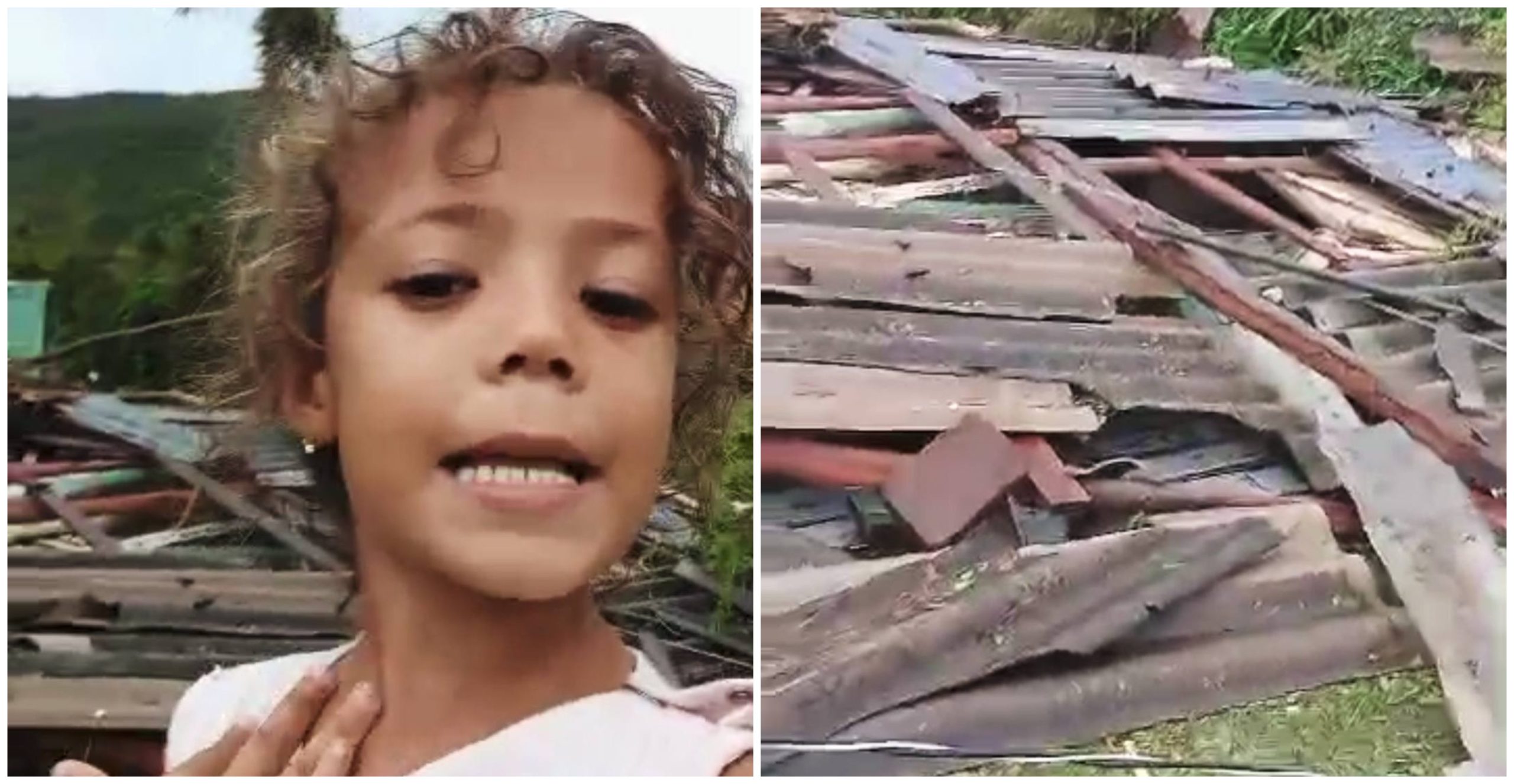 Niña cubana en Aserradero, Guamá, muestra las ruinas de su casita de madera tras el paso del Huracán Melissa