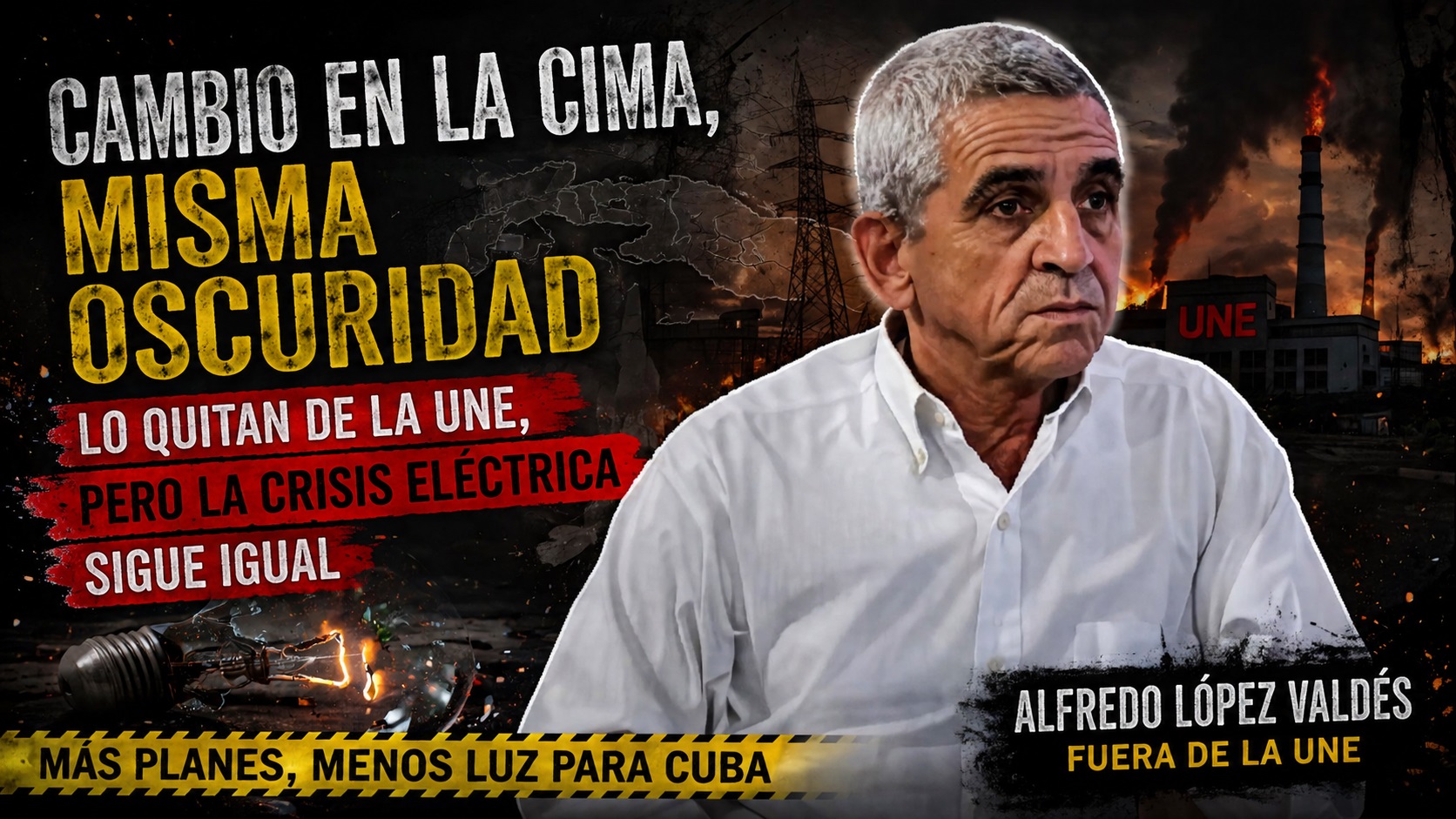 En medio de apagones que no dan tregua, el régimen volvió a mover sus piezas. Alfredo López Valdés dejó la dirección de la Unión Eléctrica (UNE) y ahora pasa a ocupar un nuevo cargo como director de energía dentro del Ministerio de Economía y Planificación. Un cambio que, lejos de traer calma, levanta más preguntas que respuestas.
